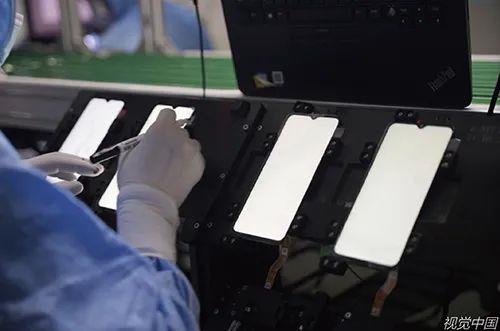 广东东莞工人制造智能手机面板