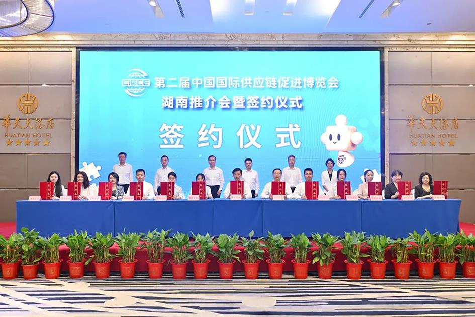 7月5日,第二届中国国际供应链促进博览会湖南推介会暨签约仪式在长沙成功举办,中国贸促会会长任鸿斌与湖南省副省长蒋涤非共同出席会议并见证企业签约。