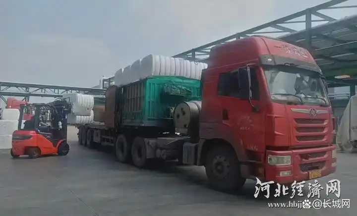 石家庄常山恒新纺织有限公司从江苏购买的原材料装车。