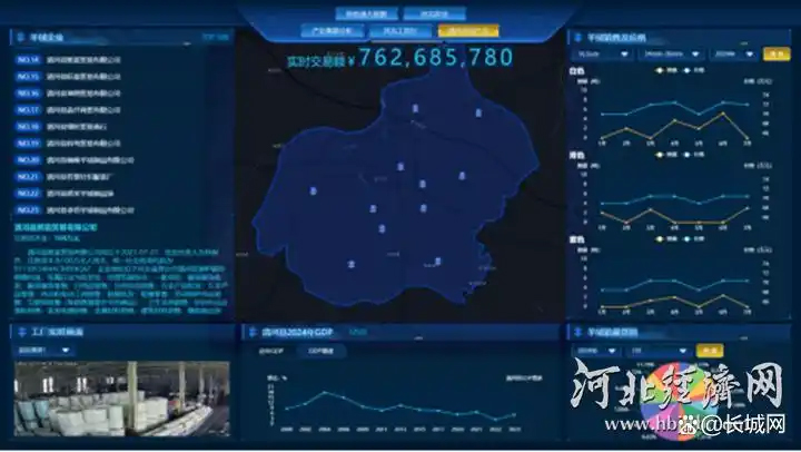 走进河北交投怡亚通,记者看到,蓝色的电子大屏上各版块业务的订单调度信息不停跳动着,上面展示着333个县域产业集群、107个重点产业、86个规模超百亿产业集群的情况。县域产业销量、价格走势、企业排名、GDP增速等可视化分析,让人一目了然。