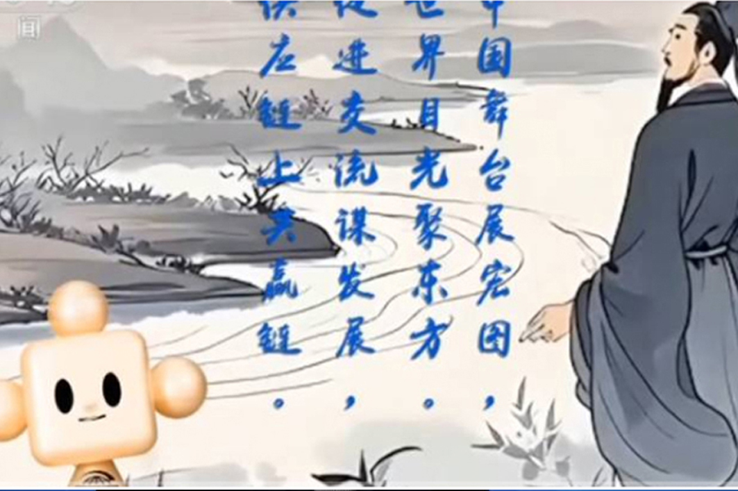 • 第二届中国国际供应链促进博览会于11月26日在北京正式开幕。#链博会 吉祥物“链氪”来到数字科技展区,遇到了一位神秘人物。数字诗人李白是怎么诞生的?“链氪”探链来了!